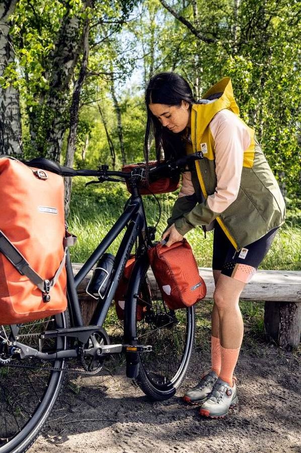 Das Fork-Pack Plus aus abriebfestem Corduragewebe wiegt inklusive Adapter nur 325 Gramm und bietet 5,8 L zusätzlichen Stauraum für deine nächste Radtour. Die ultraleichte Tasche mit Rollverschluss kann mit Hilfe des Quick-Lock S Adapters sowohl an Gabeln mit dafür vorgesehenen Schraubbefestigungen, als auch an Gabeln ohne spezielle Schraubenaufnahme montiert werden. Die Rohre müssen hierfür einen konstanten Durchmesser von 30 mm bis 42 mm haben. Das einfache und schnelle Einhängen und Abnehmen des Fork-Pack Plus von der montierten Adapterplatte ist mit einer Hand in Sekundenschnelle möglich. Die PVC-freie Gabeltasche ist natürlich nachhaltig in Deutschland hergestellt.