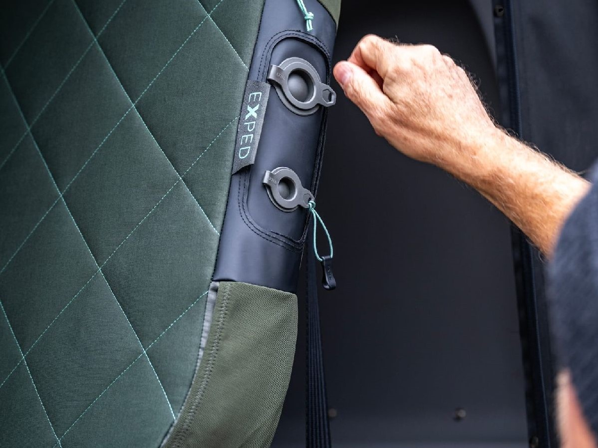 Praktische Seitenreißverschlüsse ermöglichen das lückenlose Verbinden einer oder mehrerer Matten für geselliges Schlafen und verwandeln die LuxeMat in eine superisolierte Liege für den Einsatz im Basecamp oder Van. Kleinere Gegenstände können in den Seitentaschen aufbewahrt werden.